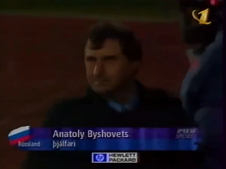 Казалось, уж в Исландии наши футболисты точно возьмут три очка. Но Бышовец выставил состав, в котором не было ни одного номинального форварда: Станислав Черчесов, Юрий Ковтун, Виктор Онопко, Евгений Варламов, Игорь Яновский, Алексей Смертин, Игорь Шалимов, Егор Титов, Валерий Карпин, Андрей Тихонов, Александр Мостовой. Последний-то и был выдвинут на острие атаки.