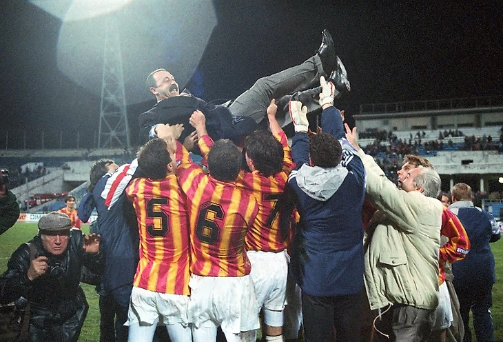Денег в «Алании» действительно было больше, чем в московских командах, но, пожалуй, это единственное фактическое доказательство теории купленного золота. Играла команда Газзаева весело и солидно: недаром часть того состава уехала в непоследние европейские клубы – Омари Тетрадзе в «Рому», Игорь Яновский в «ПСЖ», лучший бомбардир Михаил Кавелашвили в «Манчестер Сити». Да в 1995-м даже Анатолий Канищев, самый карикатурный футболист тех времен, умудрился забить семь голов – с передач Мирджалола Касымова у кого угодно это бы получилось!