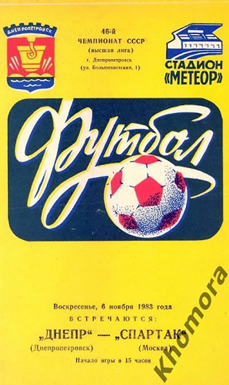 6 ноября 1983 года 35 тысяч болельщиков «Днепра» забили под завязку трибуны стадиона «Метеор» в предвкушении триумфа своей любимой команды. Уже к середине первого тайма Олег Таран забил два мяча, но спартаковцы к 51-й минуте счет сравняли: ответный дубль положил Валерий Гладилин.