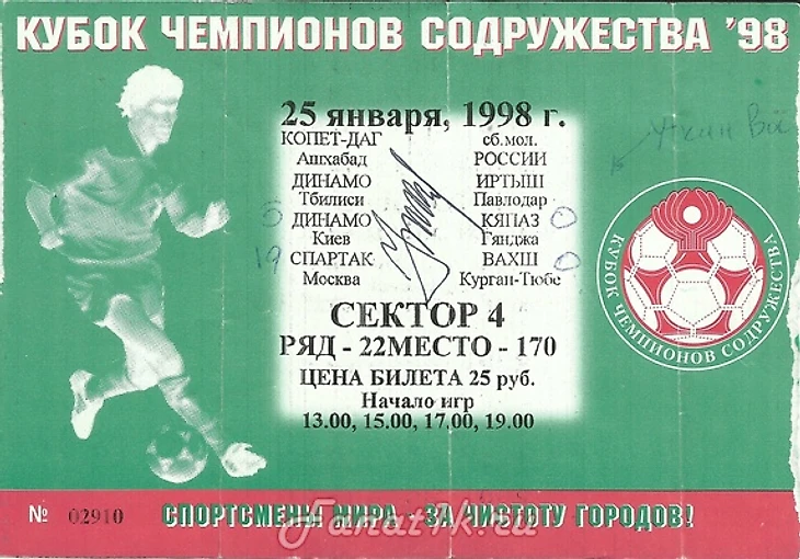 Матчи группового раунда Кубка Содружества из-за категорически разного уровня соперников зачастую завершались с неприличным даже для хоккея счетом. Вот тбилисское «Динамо», средний возраст игроков которого едва перевалил за 19 лет, в 1996 году громит «Памир» из Душанбе 9:0. Фирменный техничный футбол прилагается.