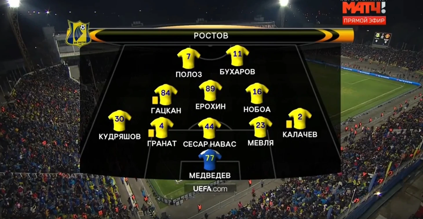 Итак, 9 марта 2017 года на землю ростовской арены вышел самый боевой состав «МЮ». Разве что в воротах играл не Давид Де Хеа, а Серхио Ромеро. Но разве голкипер сборной Аргентины – это не топ-уровень?