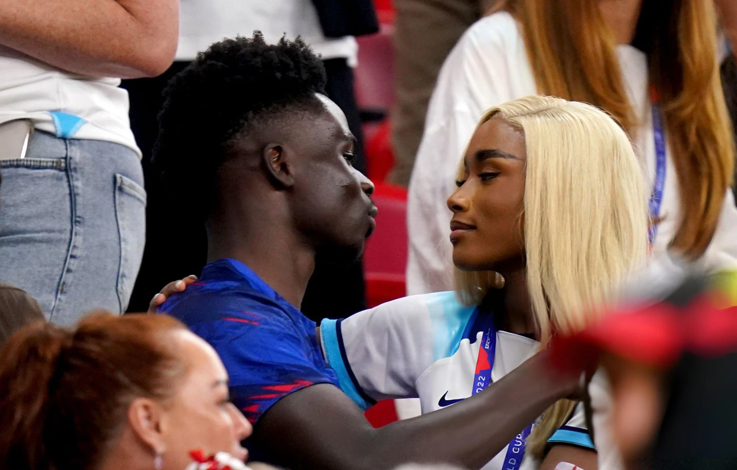 Известно об их отношениях стало в 2022-м, когда влюбленные вместе отдыхали в Дубае. В том же году Толами болела за сборную Англии на чемпионате мира в Катаре – в футболке с номером Сака.