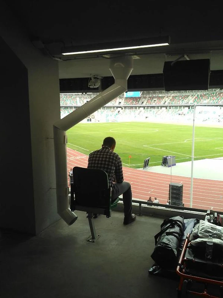Мой комментарий: все ушли, всё забыли, остался лишь стадион и “красивые” решения на нём с капающей за шиворот водой. Прекрасно!