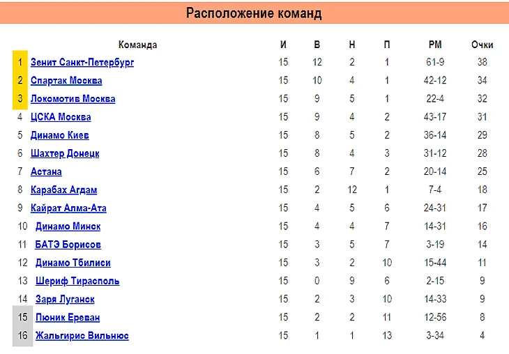 Турнирная таблица к середине сезона выглядит так: