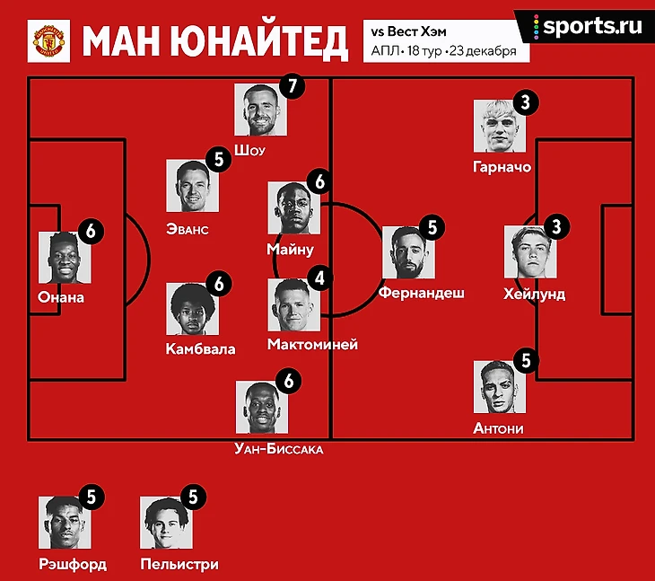 Андре Онана (6) – неплохая распасовка, «Вест Хэм» ему с этим не мешал. Почти спас в моменте с первым голом, но со вторым было сложнее. К пропущенным непричастен.