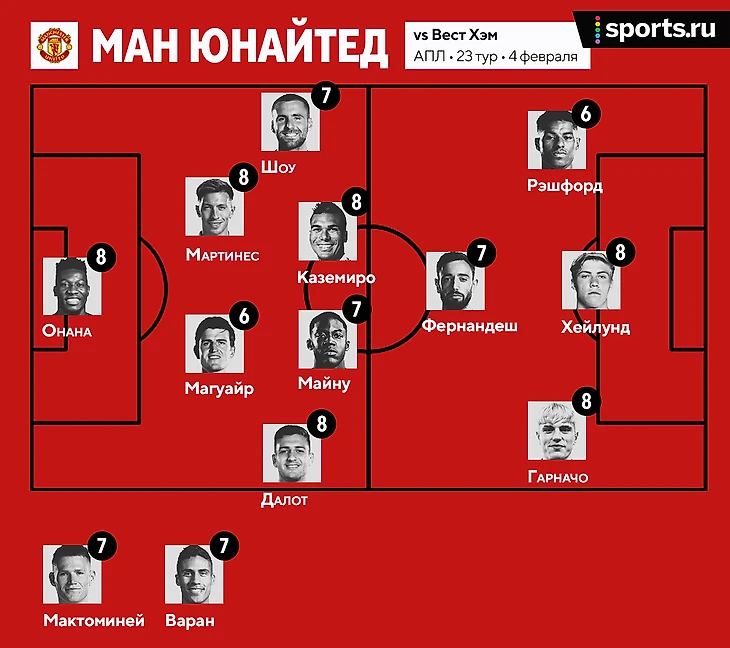 Лисандро Мартинес (8) – потрясающая игра в обороне, организованность и хладнокровность с мячом. Здоровья аргентинцу!