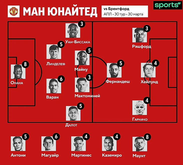 Маунт жив! Рейтинг игроков «МЮ» в матче с «Брентфордом» (1:1)