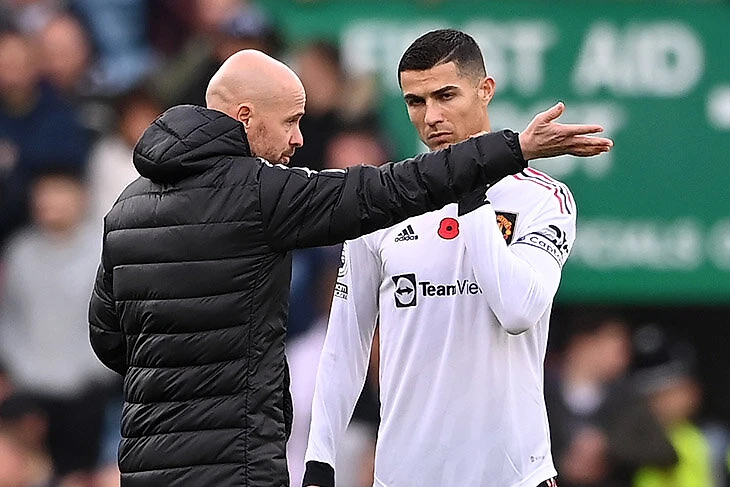 Криштиану Роналду пропустил почти всю предсезонку, и в первом туре АПЛ-2022/23 Тен Хаг посадил нападающего в запас. За первую половину сезона Роналду вышел в старте в АПЛ всего четыре раза, еще в шести матчах выходил со скамейки. За это время Роналду забил один мяч и услышал слова Тен Хага о том, что он не в форме.