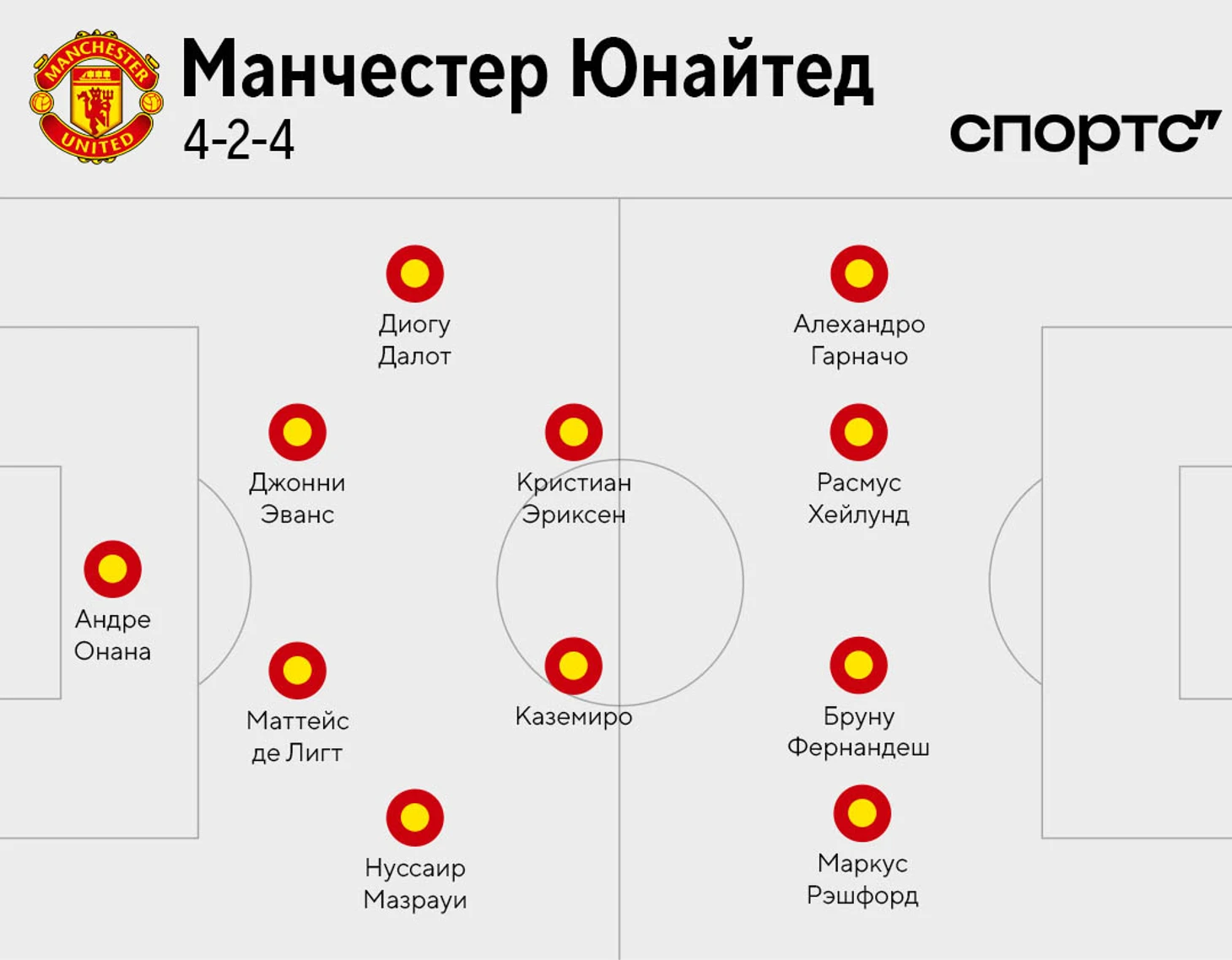 Кристиан Эриксен незаменим в центре поля и должен выйти в старте, если восстановится. Каземиро провел отличный матч в среду и наверняка сохранит место в основе.