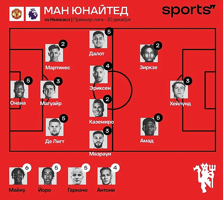 Снова провал. Рейтинг игроков «МЮ» в матче с «Ньюкаслом»