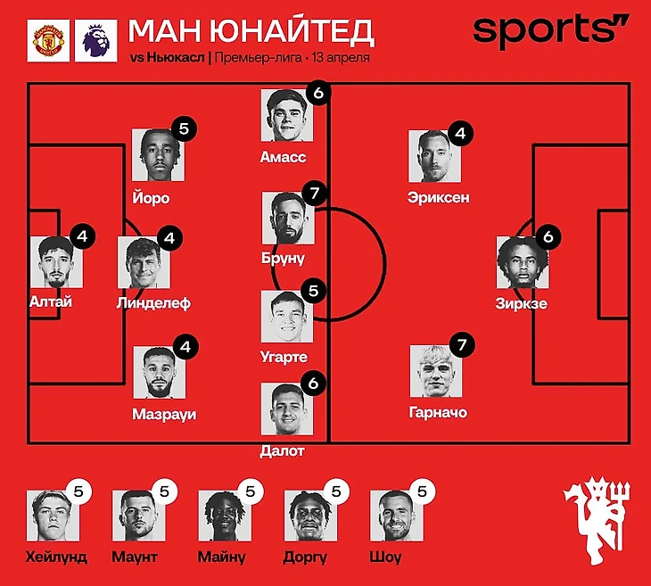 Рубен Аморим выставил наполовину резервный «Манчестер Юнайтед» – и ожидаемо проиграл «Ньюкаслу» 1:4.
