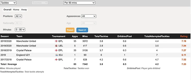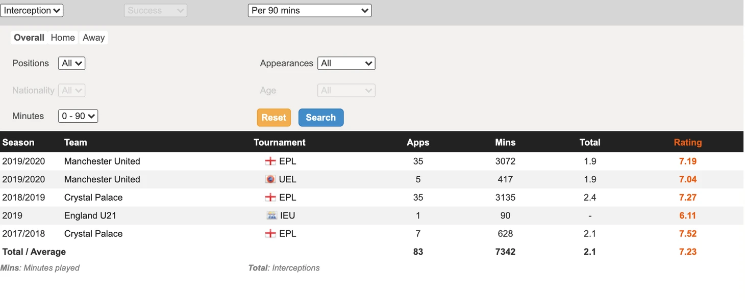 ...можно заметить, что Аарон перенёс в МЮ количество успешных отборов за игру, но увеличил количество попыток, так что в среднем он стал даже менее успешно отбирать мяч (92.5% успешных отборов/90 минут в КП против 86.4% в МЮ).