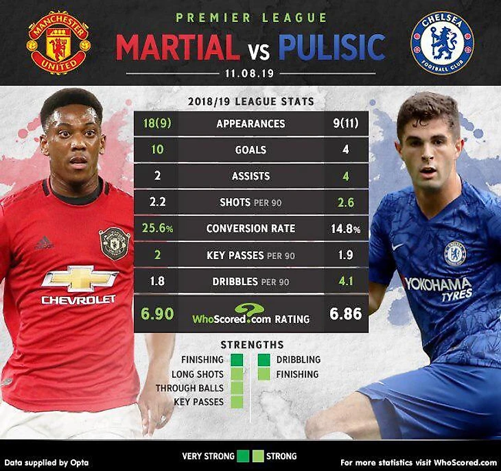 Сравнительная статистика Марсьяля и Пулишича перед главным матчем тура