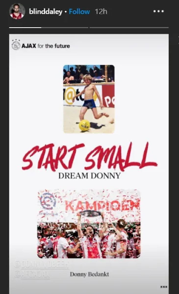 Блинд поделился трогательным посланием в честь 23-летнего полузащитника в своих сториз в Instagram. Он написал: «Начни с малого, мечтай, Донни».