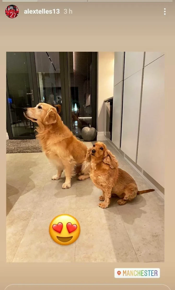 Алекс Теллес поделился фотографией двух своих собак в Манчестере: