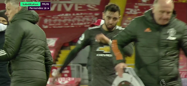 Майк Фелан ругал Бруну в матче с «Ливерпулем». А сам Фернандеш бурно отреагировал на замену
