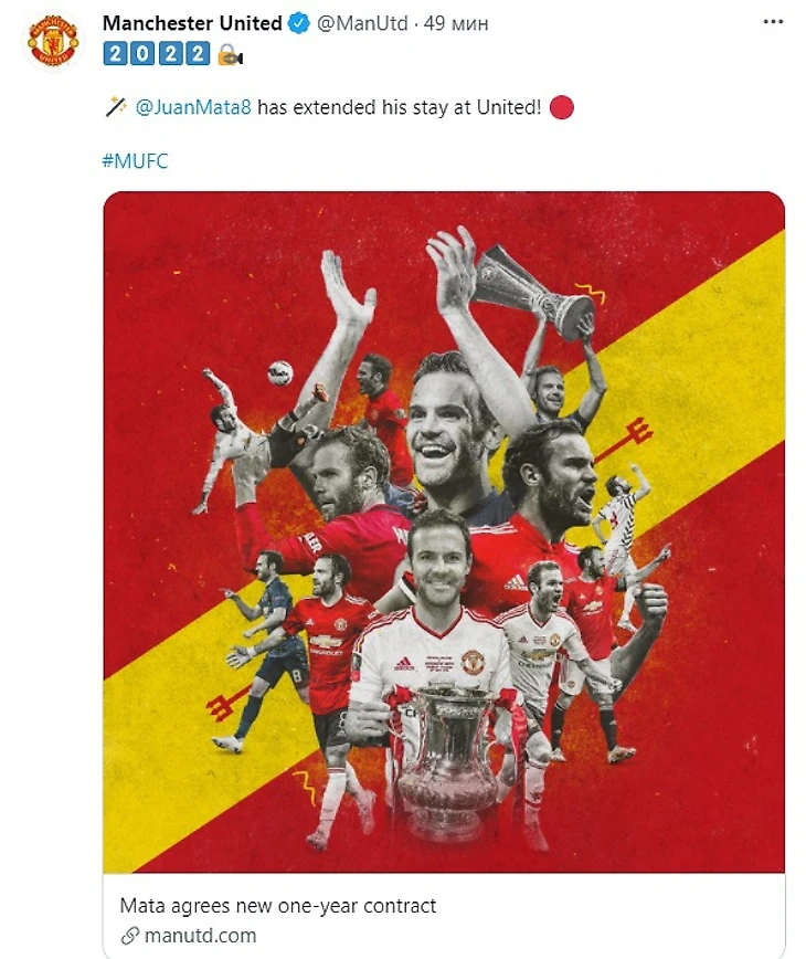 Официально: Хуан Мата продлил контракт с «МЮ» на еще один сезон, что подтвердили в клубе.