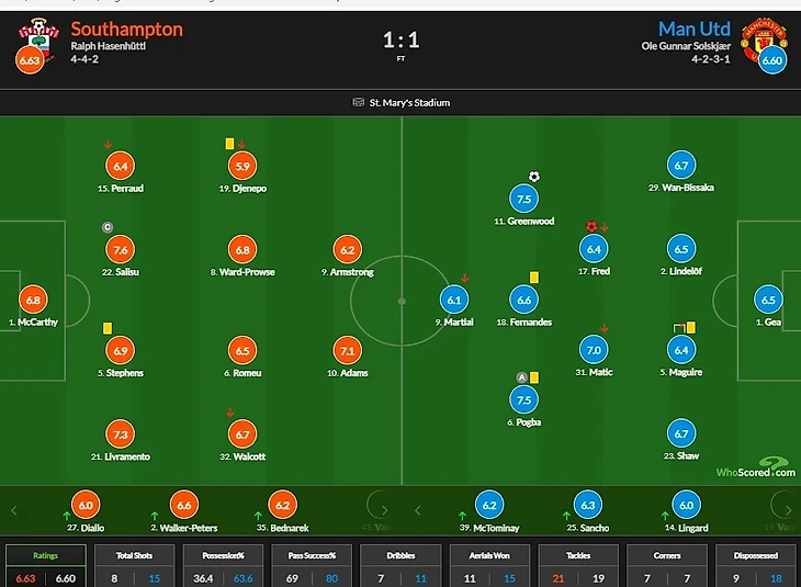 Во втором тайме Мейсону Гринвуду удалось сравнял счет благодаря передачи Поля Погба – оба футболиста получили самые высокие оценки среди по сравнению со своими одноклубниками.