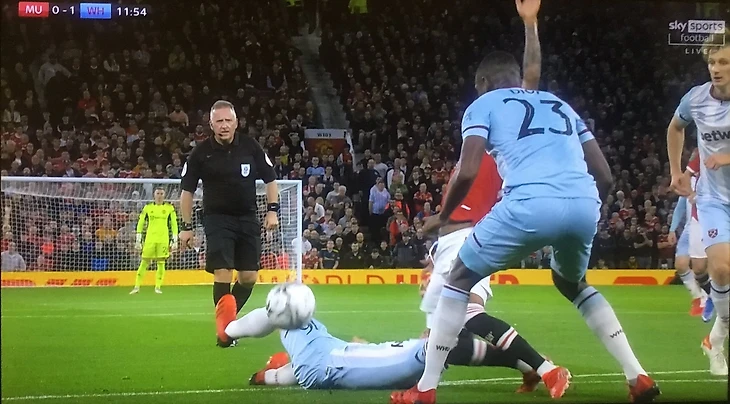 На 11-й минуте матча "МЮ" против "Вест Хэма" произошел просто вопиющий эпизод.