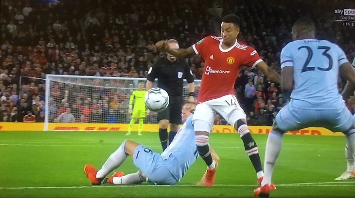 Марк Нобл схватил Джесси Лингарда за майку на границе штрафной. И хотя арбитр находился буквально в метре от происходящего и весь эпизод видел в деталях, чистый пенальти он так и не назначил.