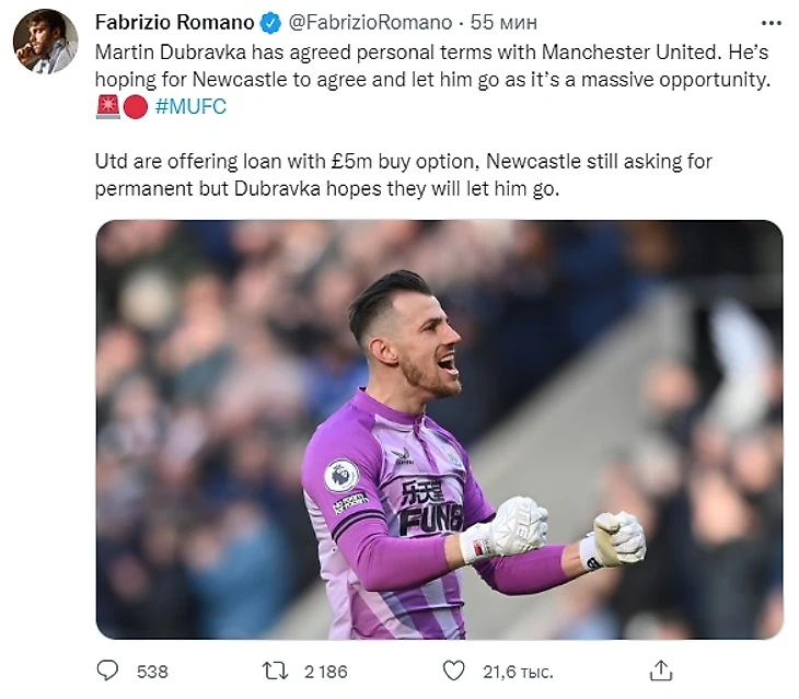 «Юнайтед» предлагает аренду за 5 миллионов фунтов стерлингов, «Ньюкасл» по-прежнему требует либо покупку игрока, либо аренду с обязательным выкупом, но Дубравка надеется, что они его отпустят».