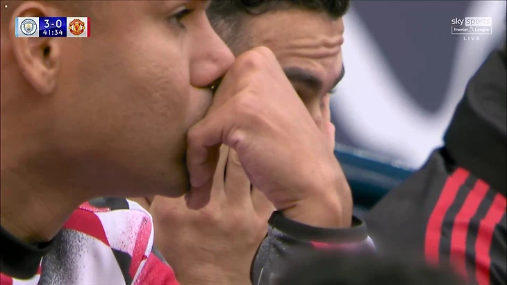 Бразильский опорник появился на поле во втором тайме, а Криш весь матче просидел в запасе. Их лица выражают всю боль болельщиков «МЮ» от произошедшего в матче.