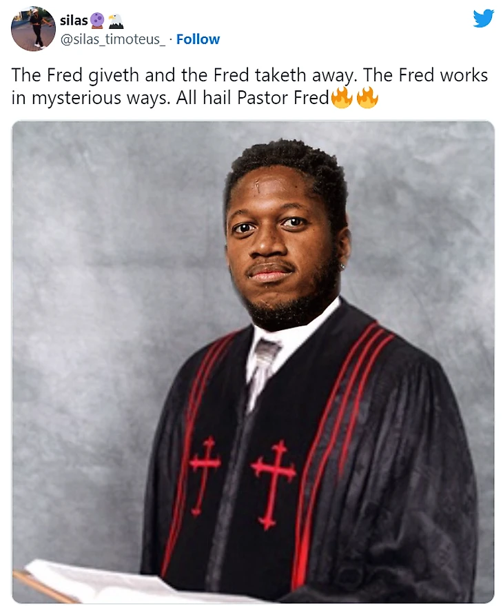 «Фред дал и Фред забрал. Фред работает таинственным образом. Да здравствует пастор Фред»