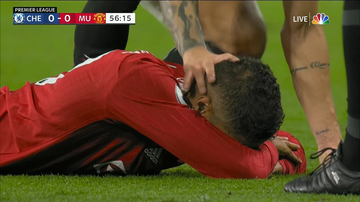 Над Вараном долго суетились врачи, а он сам плакал, лежа на земле. Ожидание было крайне напряженным, выглядело все так, будто травма очень серьезная. Но через несколько минут Рафаэль все же смог подняться сам и медленно покинуть поле, вытирая слезы. В игре его заменил Виктор Линделеф.