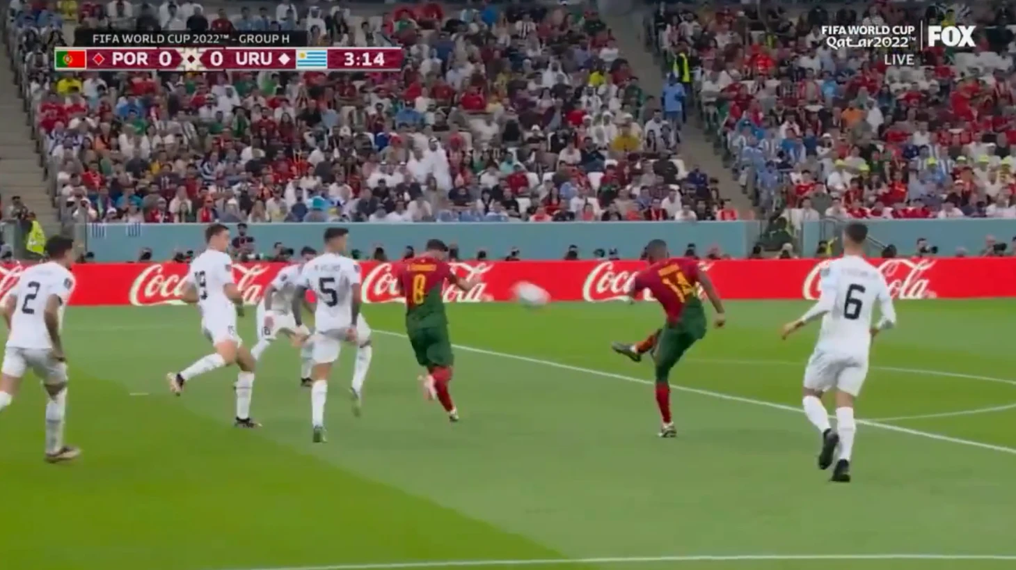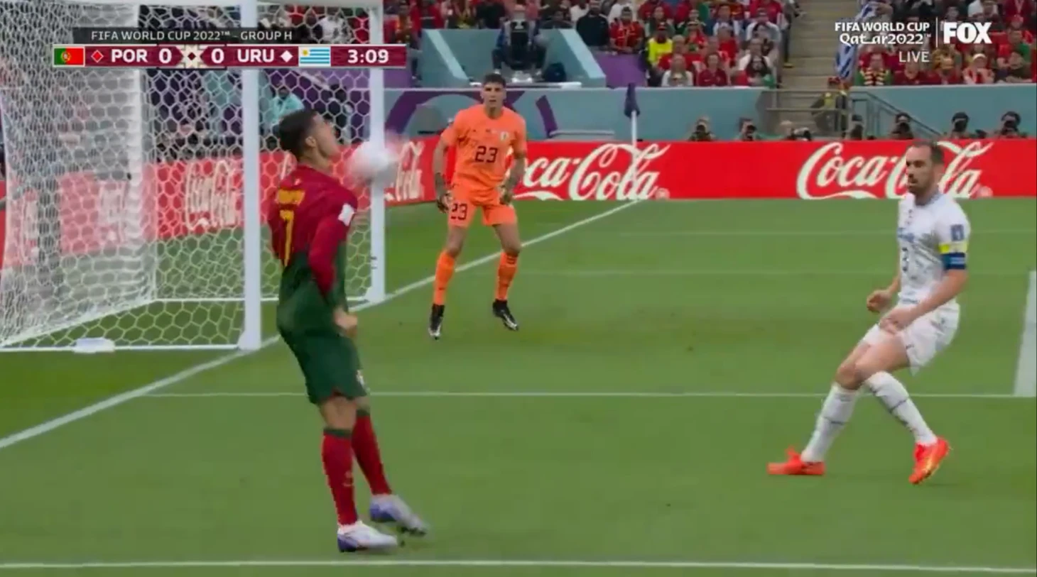 Бывший игрок «Юнайтед» Криштиану Роналду начал удивлять не только за пределами поля, но и на нем. Уже на старте игры сборной Португалии против Уругвая форвард получил верховую передачу на левом фланге и решил отдать партнеру элегантным образом − плечом.