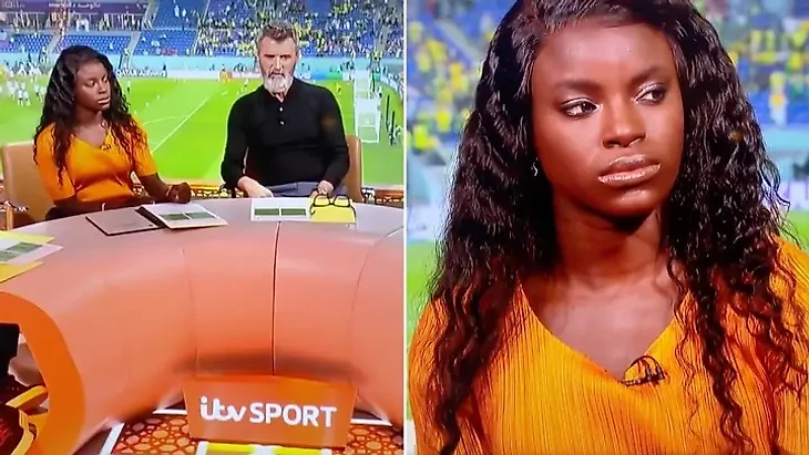 В студийном эфире после матча Бразилия – Южная Корея вместе с экс-полузащитником «МЮ» Роем Кином появилась бывшая футболистка Эни Алуко.