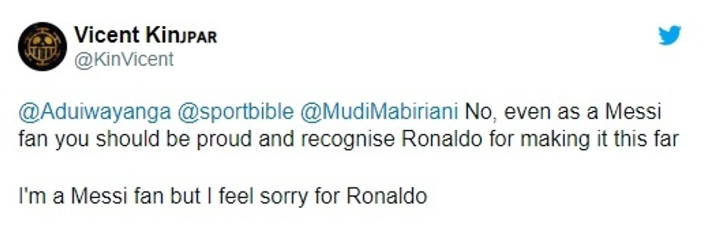 «Даже будучи фанатом Месси вы должны гордиться и признать Роналду за то, что он так далеко зашел. Я сам фанат Месси, но мне жаль Роналду».