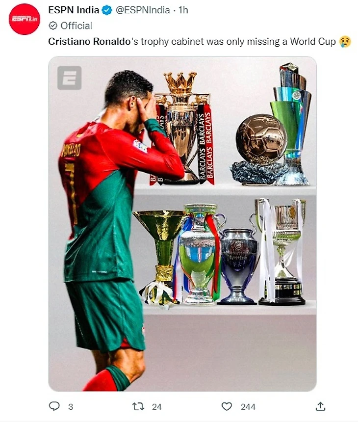 «В трофейном зале Криштиану Роналду не хватает только кубка с чемпионата мира».