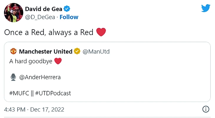 Давид Де Хеа явно посмотрел данную запись и отреагировал следующим образом: «Один раз «красный», навсегда «красный».