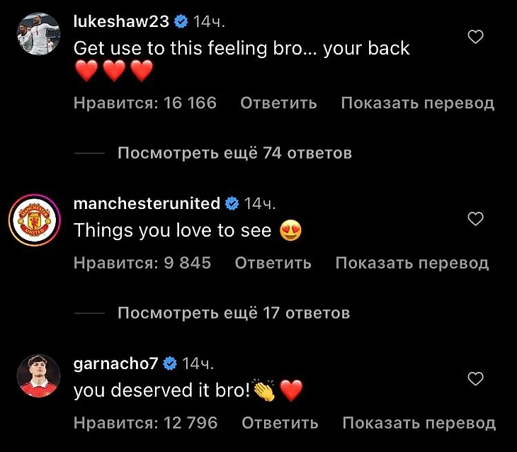 Некоторые игроки «МЮ» оставили очень милые комментарии под этим постом.