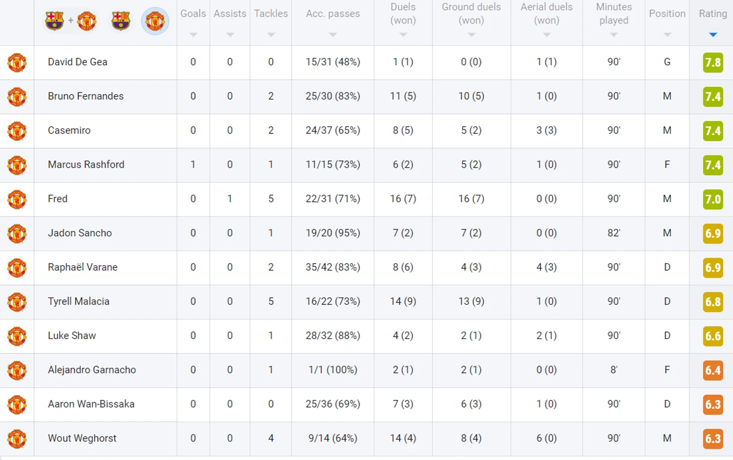 Лучший − Де Хеа, худший − Вегорст. Оценки игроков «Юнайтед» за матч против «Барселоны»