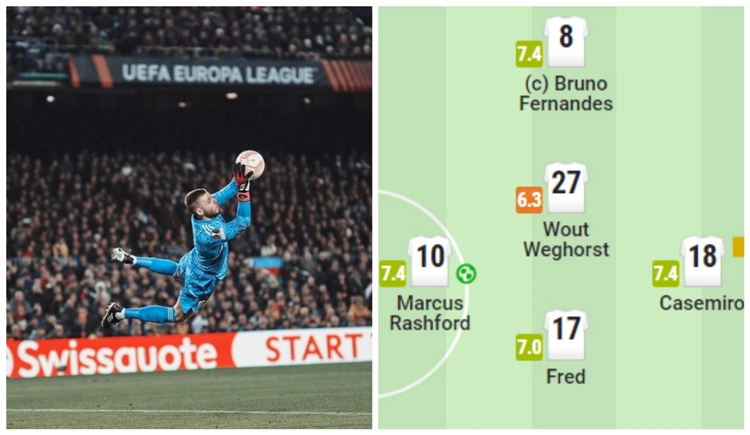 Лучший игрок матча − Давид Де Хеа. Провел уверенный матч, несколько раз откровенно спас команду. При этом в обоих голах вины испанца нет.