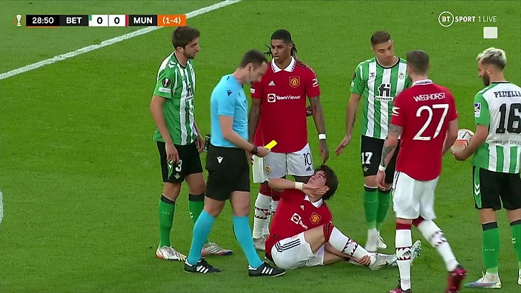 Болельщики «Манчестер Юнайтед» удивлены решением судьи наказать Факундо Пельистри желтой карточкой в матче с «Бетисом».