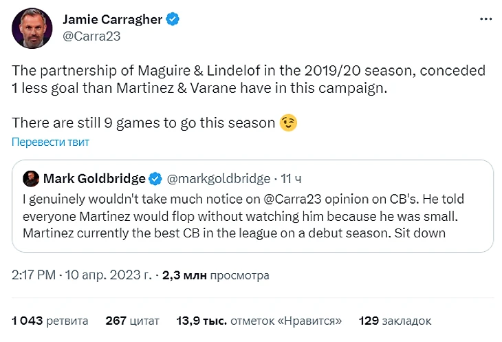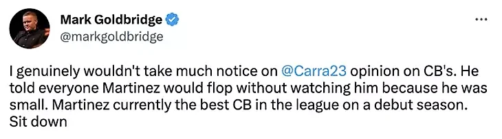 Однако один из болельщиков «Юнайтед», ютубер Марк Голдбридж решил поддеть Джейми Каррагера и напомнил, как тот ошибся с Мартинесом: