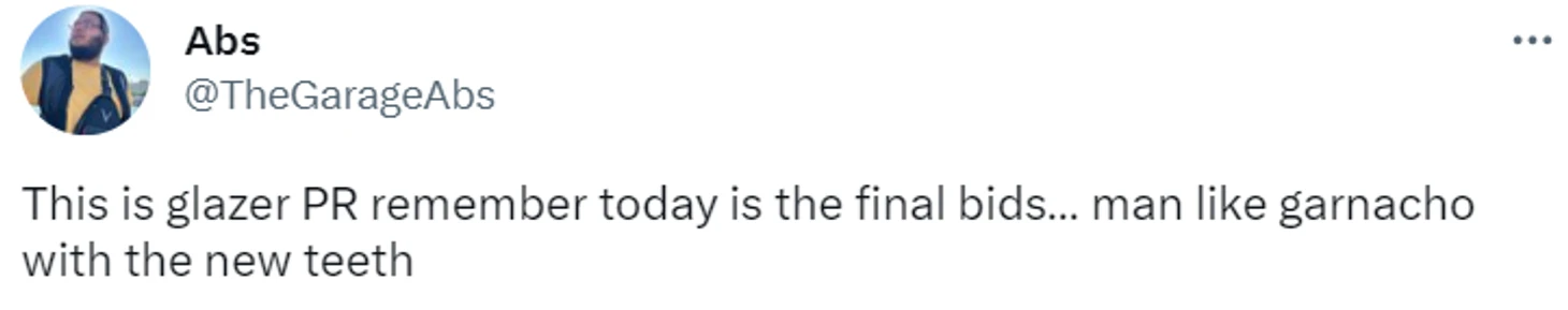 💭 «Это все пиарщики Глейзеров, помните, сегодня начались заключительные торги. Человек, похожий на Гарначо, с новыми зубами».