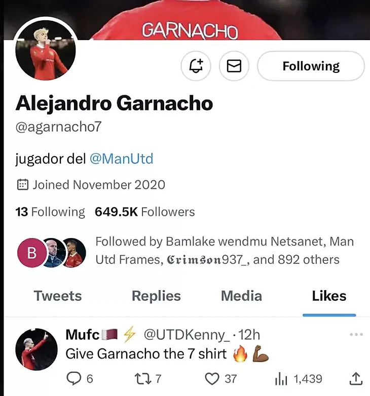 На этой неделе молодой игрок «Юнайтед» Алехандро Гарначо подписал новый контракт с клубом до 2028 года. После этого в своем аккаунте Твиттер аргентинец оставил сразу две пасхалки по поводу того, какой номер он бы хотел взять в будущем.