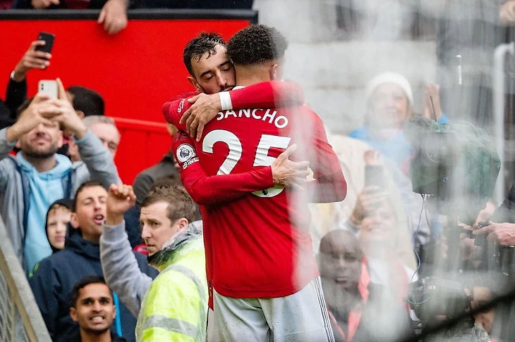 📸 Фанаты прочитали по губам слова Санчо, после которых Фернандеш забил «Астон Вилле». Это сотый гол Бруну в лигах