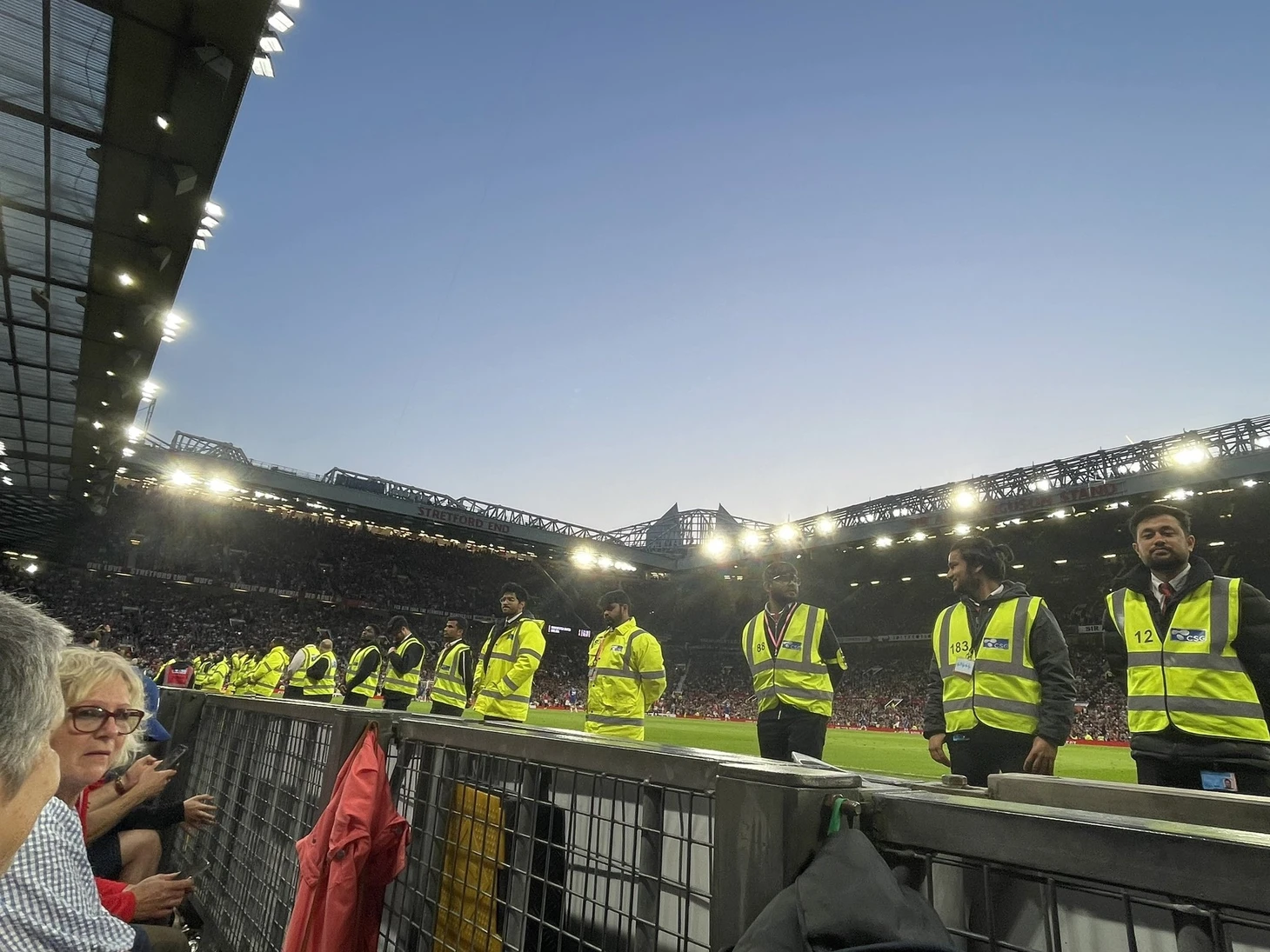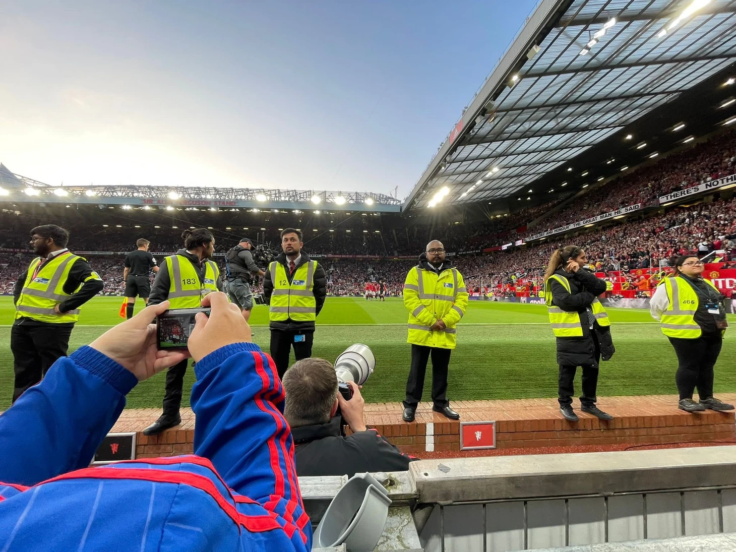 В соцсетях фанаты рассказывают, что в последние 20 минут матча стюарды выстроились у кромки поля, загораживая собой обзор. Поклонники «красных дьяволов» делятся видео и фотографиями с игры.