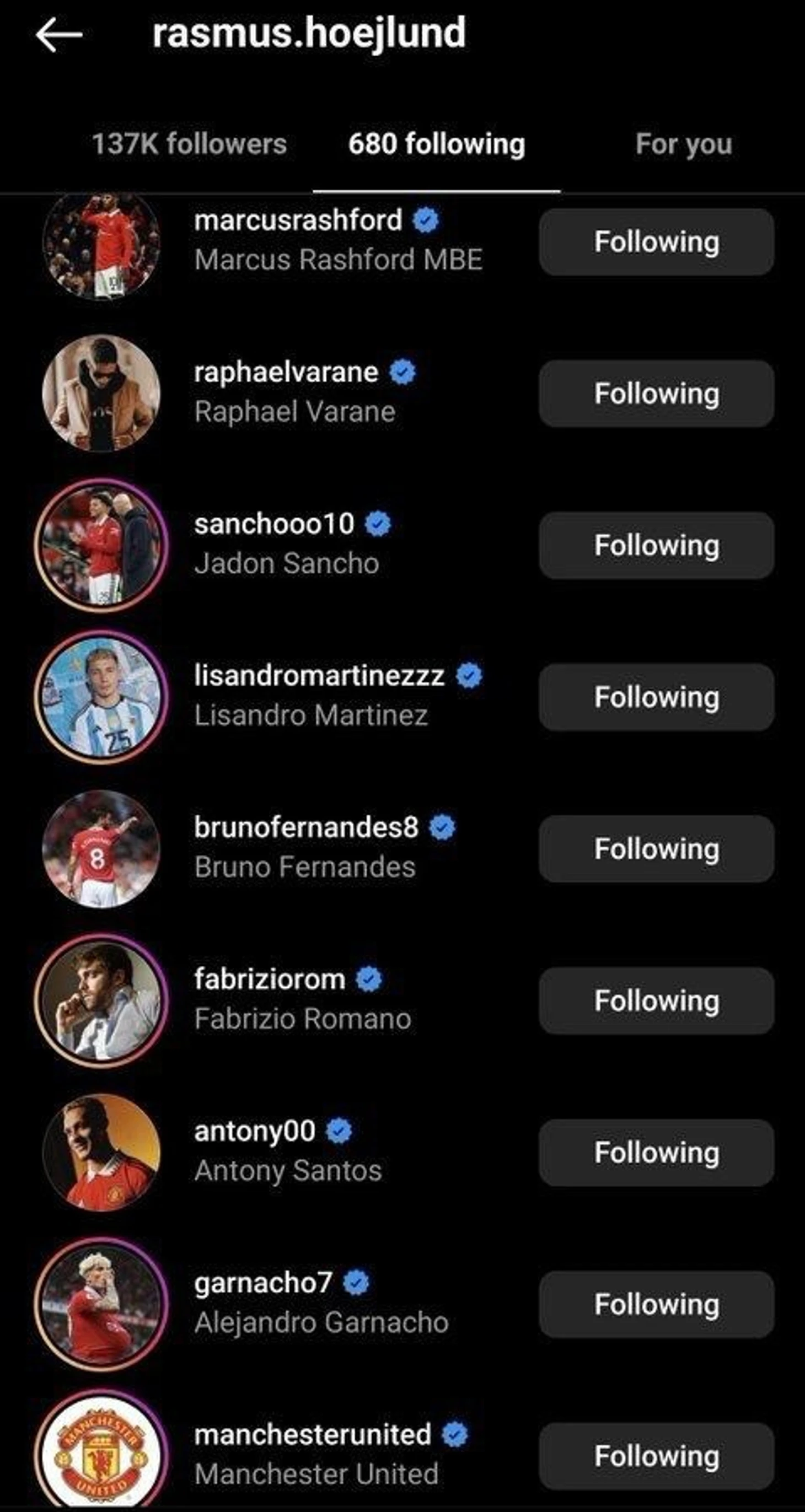 Если взглянуть на подписки Расмуса, то можно найти львиную долю состава «красных дьяволов»: