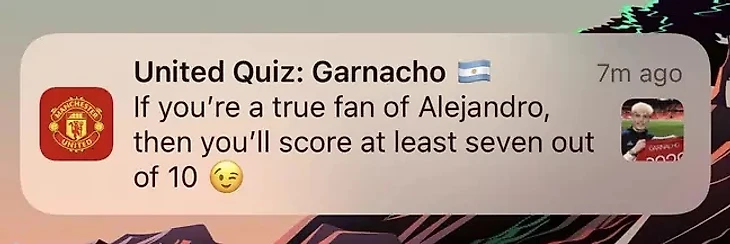 Болельщики получили, казалось бы, заурядное уведомление из клубного приложения. Пользователем был предложен квиз о Гарначо: