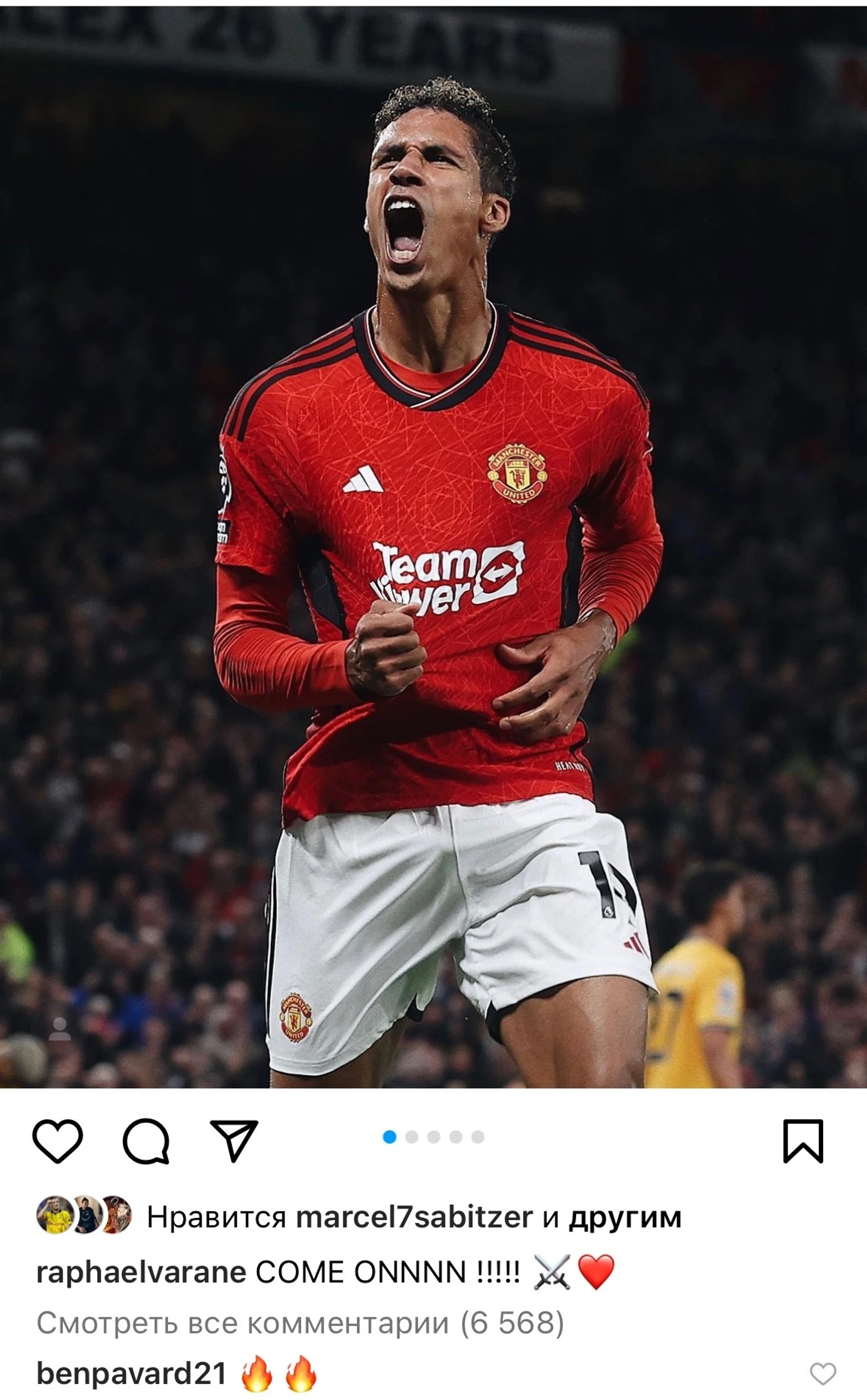 В первом туре АПЛ «Юнайтед» дома обыграл «Вулверхэмптон». Единственный гол в противостоянии на свой счет записал Варан. После игры Рафаэль выложил фото с матча, которое прокомментировал Павар.