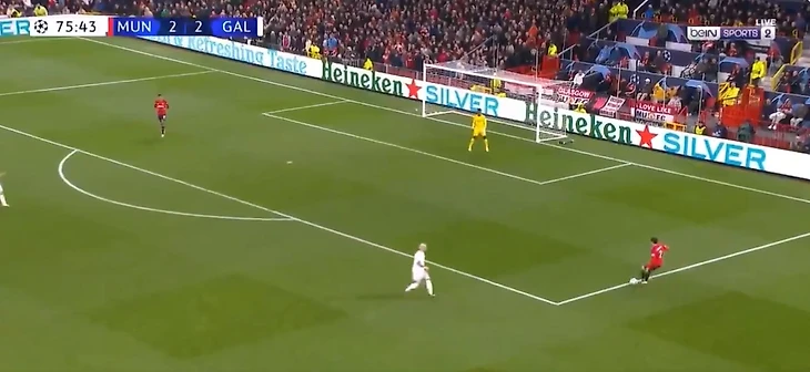Дрис понесся в атаку, он фактически выходил один на один с вратарем. Каземиро пытался спасти ситуацию, но не смог. Он слишком грубо срубил бельгийца в штрафной.