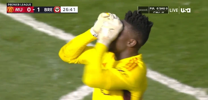 Переживает, как в первый раз. Эмоциональная реакция Онана на собственную ошибку в матче с «Брентфордом»