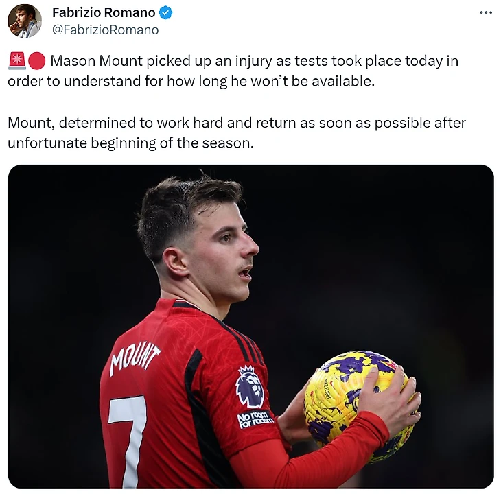 У Мэйсона Маунта травма. Фабрицио Романо рассказал о состоянии полузащитника «Юнайтед»