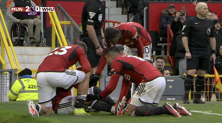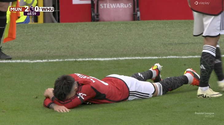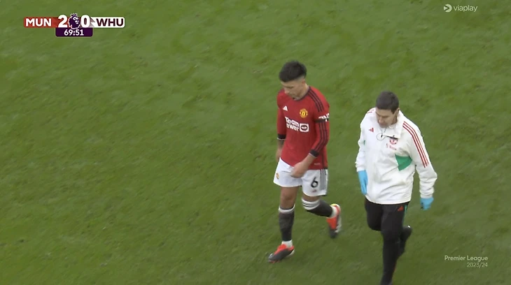 Медицинская бригада «Юнайтед» оказала аргентинцу помощь, он даже вернулся в игру. Но вскоре Мартинес вновь почувствовал боль и лег на газон.