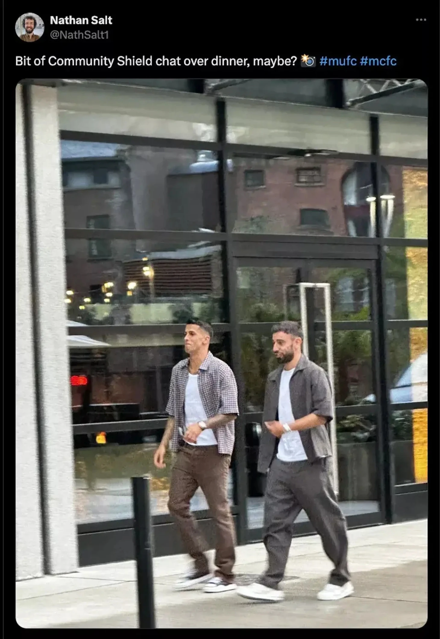 Бруну Фернандеш поужинал с Жоау Канселу перед матчем за Суперкубок Англии